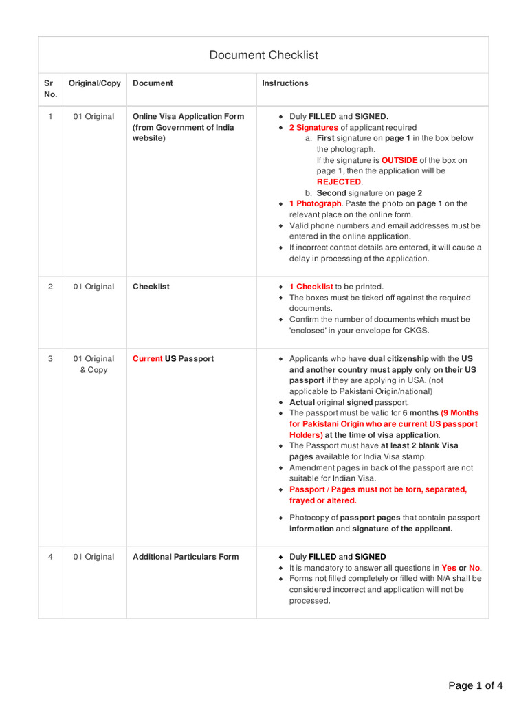 This checklist can be updated at any point. If the application is in transit, you may have to provide Additional / New