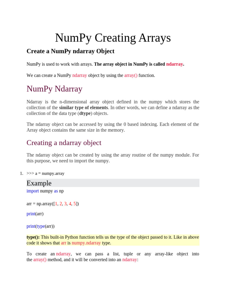 To create an ndarray, we can pass a list, tuple or any array-like object into