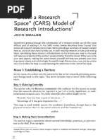 previous research, highlighting a possible methodological limitation of that research, or suggesting a different interpretation of the results of that research. Finally, they suggest that their own study will rectify the problems theyve just mentioned. Swales adds that the order of these four steps may vary and that the fourth step may be left implicit; but these are simply variations of the basic pattern. This information helps the students recognize that academic discourse often takes relatively predictable forms, an insight which may help them to read that discourse with better comprehension. More important, it demonstrates to students that the research-based writing most highly valued in university settings doesnt merely summarize facts from other sources, but uses those other sources as springboards for original research to test previous findings and create new knowledge. Thus, the information implicitly encourages students to define their task more ambitiously. But although they readily understand Swaless moves, most students dont at first see the moves as applicable to their own writing. After all, their research papers wont be written in experimental report form, nor will most of them write in that form on any other occasion. Moreover, theyre not sophisticated enough to spot methodological limitations in or suggest alternative interpretations of results from previous studies, let alone to design an experimental study of their own. One student accurately summarized his classmates initial response when he said, You have to be scientists to be able to use that stuff, and were not. But in fact, Swaless moves can be applied to disciplines far removed from the experimental sciences. To demonstrate this point to the students, I sometimes