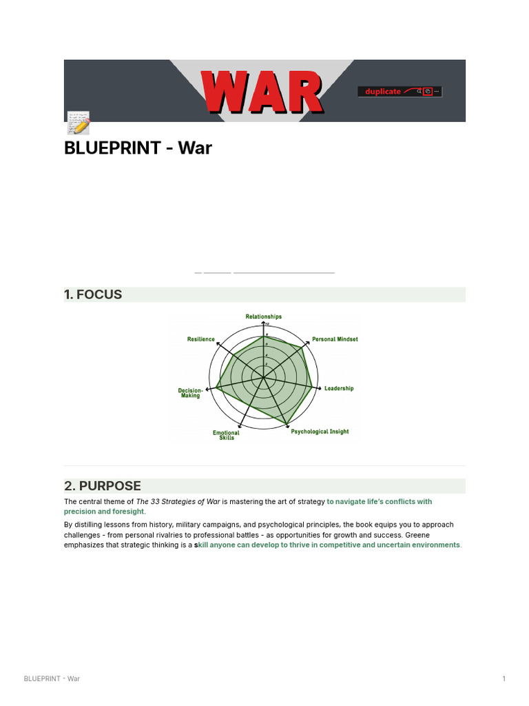 ☝ The structure of The 33 Strategies of War by Robert Greene bookmirrors the progression of a strategic