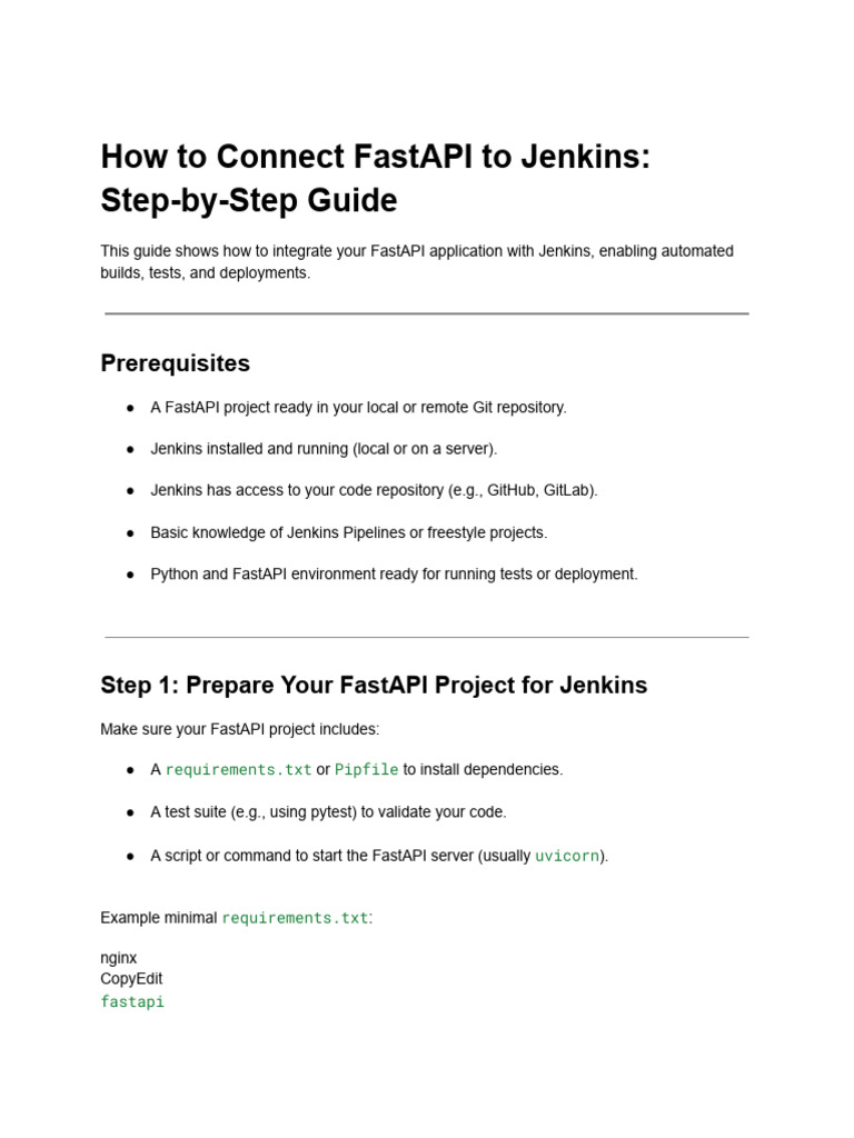 This guide shows how to integrate your FastAPI application with Jenkins, enabling automated