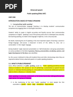 Public Speaking is the process of communicating to the audience. It is usually done before a