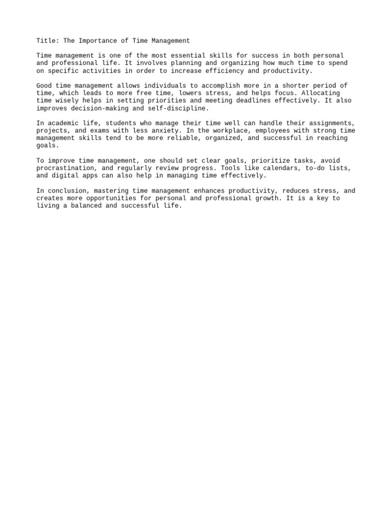 In conclusion, mastering time management enhances productivity, reduces stress, and