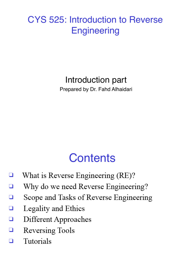 ❑ Taxonomy of Reverse Engineering (Chikofsky&Cross, 1990)