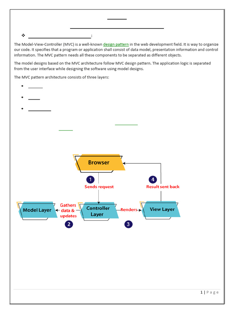 The Model-View-Controller (MVC) is a well-known design pattern in the web development field. It is way to organize