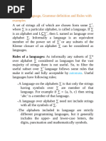 Alphabet-languages and grammars- Productions and derivation-Chomsky hierarchy of languages. Regular