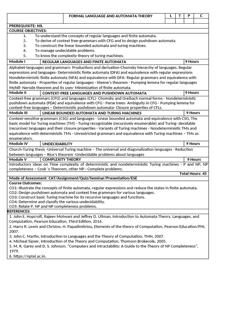 FORMAL LANGUAGE AND AUTOMATA THEORY L T P C