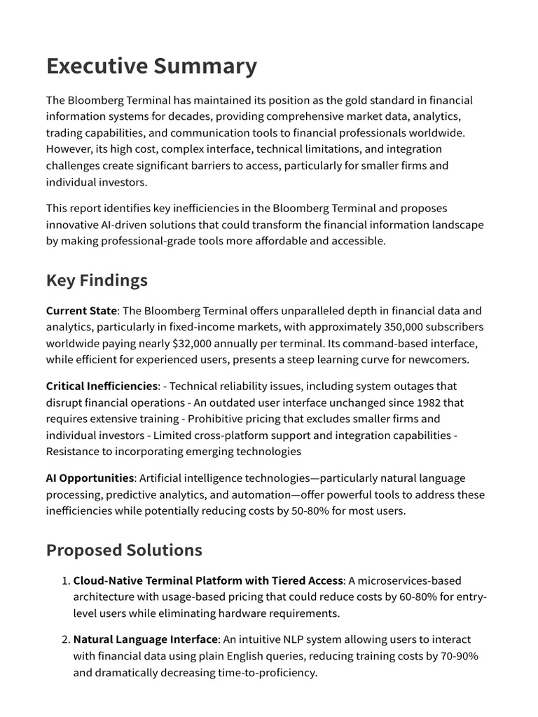 This report identifies key inefficiencies in the Bloomberg Terminal and proposes
