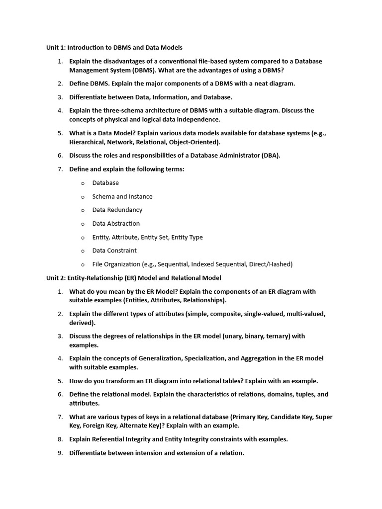Unit 1: Introduction to DBMS and Data Models