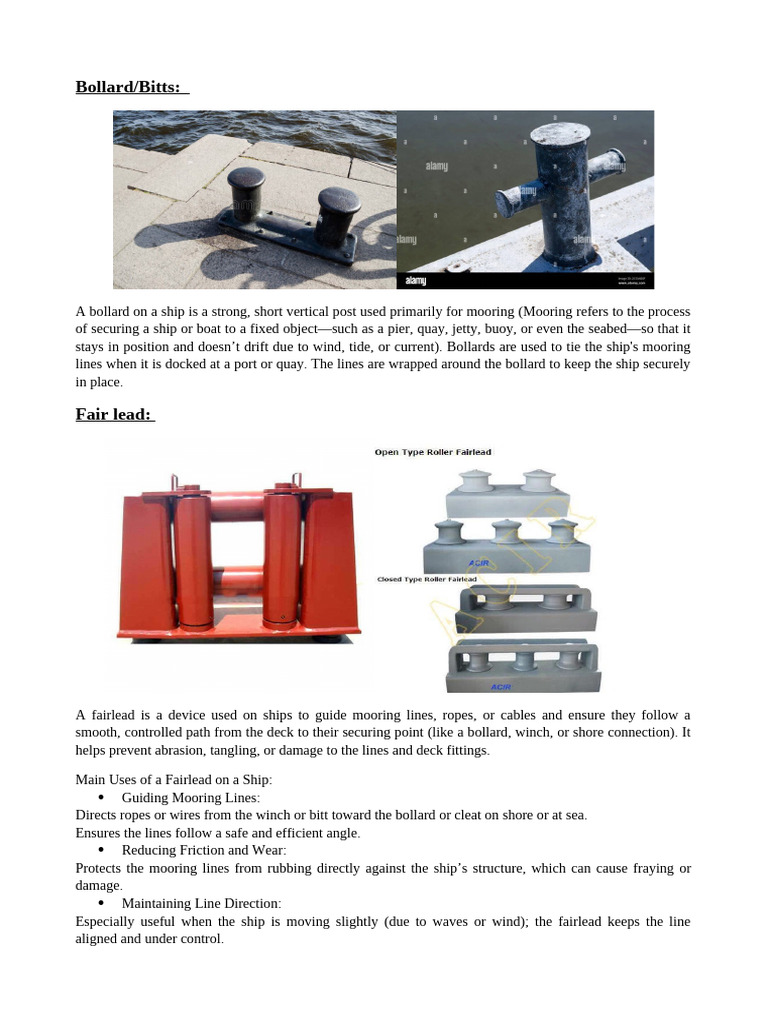 stays in position and doesn’t drift due to wind, tide, or current). Bollards are used to tie the ship's mooring