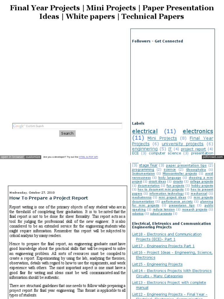 Instrum e ntaion (1) Microcontrolle r proje cts (1) avoid ne rvousne ss (1) body language (1) choosing a m ini proje ct (1) circuit ide as (1) circuits (1) colle ge proje cts (1) docum e ntation (1) fun proje cts (1) hobby proje cts W e dne sday, O ctobe r 27, 2010 (1) how to docum e nt m ini proje cts (1) how to pre se nt pape rs (1) inform ation te chnology (1) m e chanical (1) m e chatronics (1) m ini proje ct ide as (1) m ini proje cts docum e ntation (1) pe rform ance anx ie ty (1) planning for m ini proje cts (1) pre se ntaion tips (1) public spe ak ing (1) re duce te nsion (1) re se arch proje cts (1) robotics (1) school proje cts (1)
