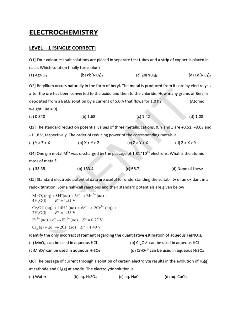 Q10] A 250.0 mL sample of a 0.20 M Cr3+ is electrolysed with a current of 96.5 A. If the remaining