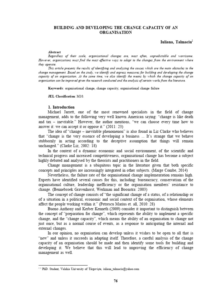 BUILDING AND DEVELOPING THE CHANGE CAPACITY OF AN