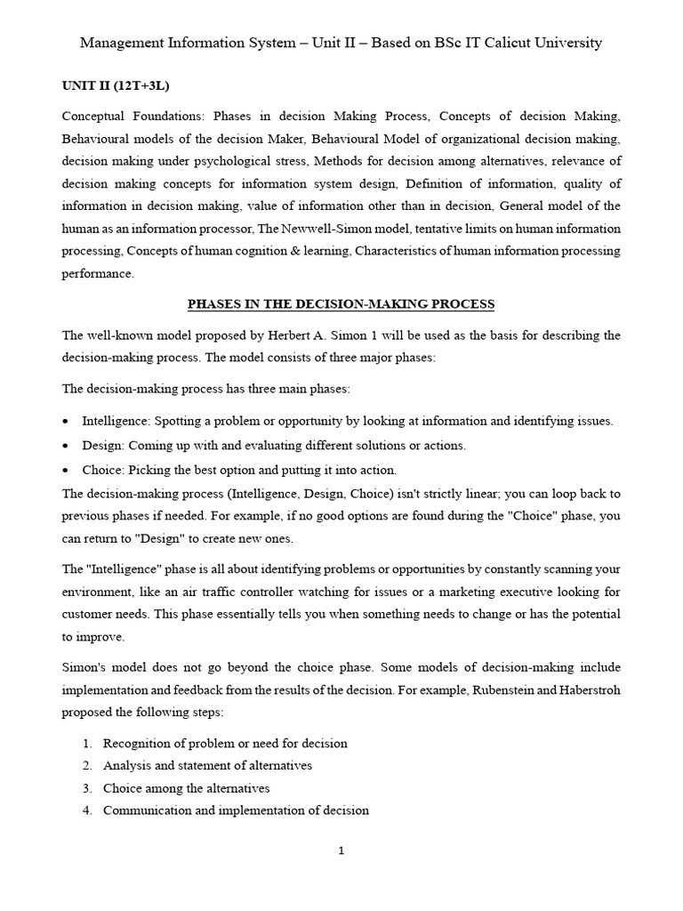 Management Information System – Unit II – Based on BSc IT Calicut University