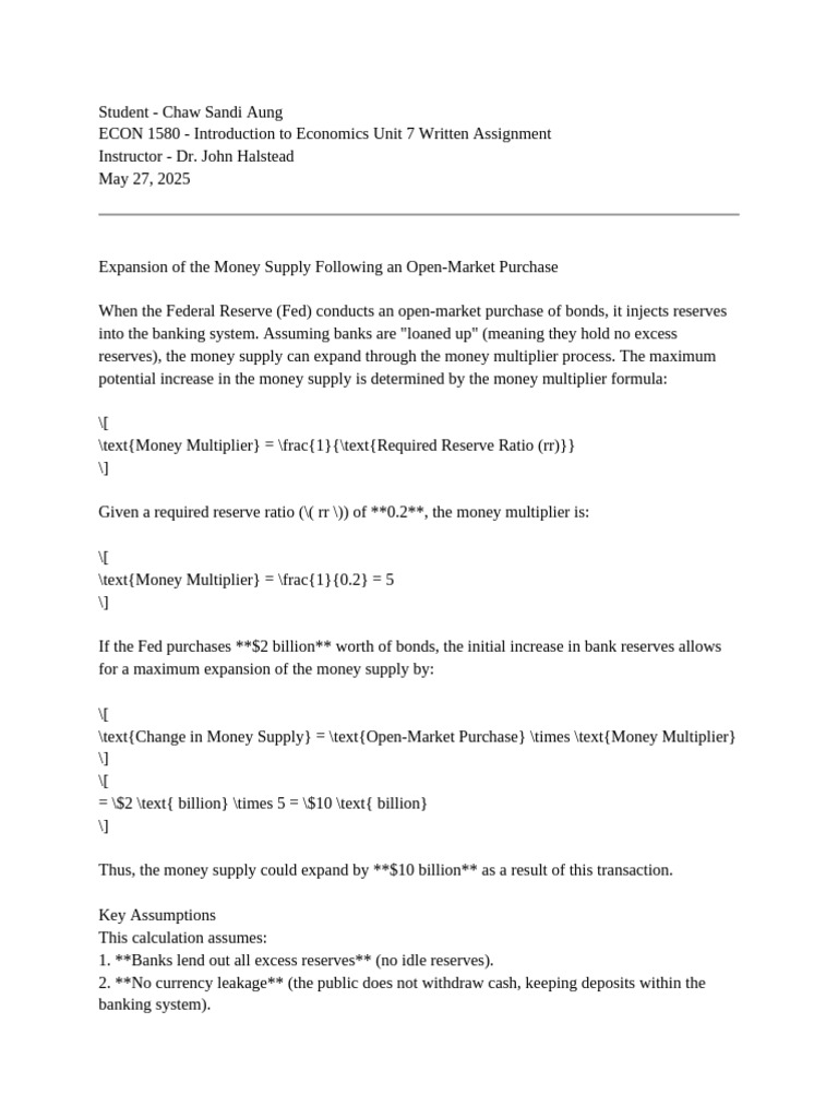 ECON 1580 - Introduction to Economics Unit 7 Written Assignment
