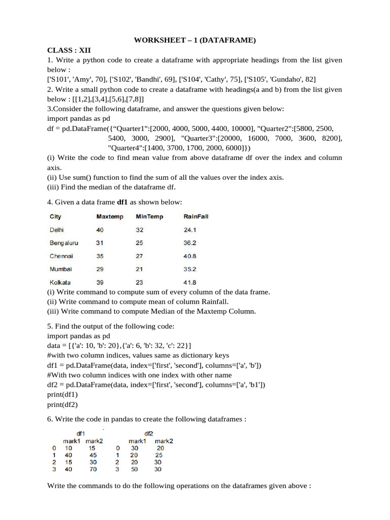 1. Write a python code to create a dataframe with appropriate headings from the list given