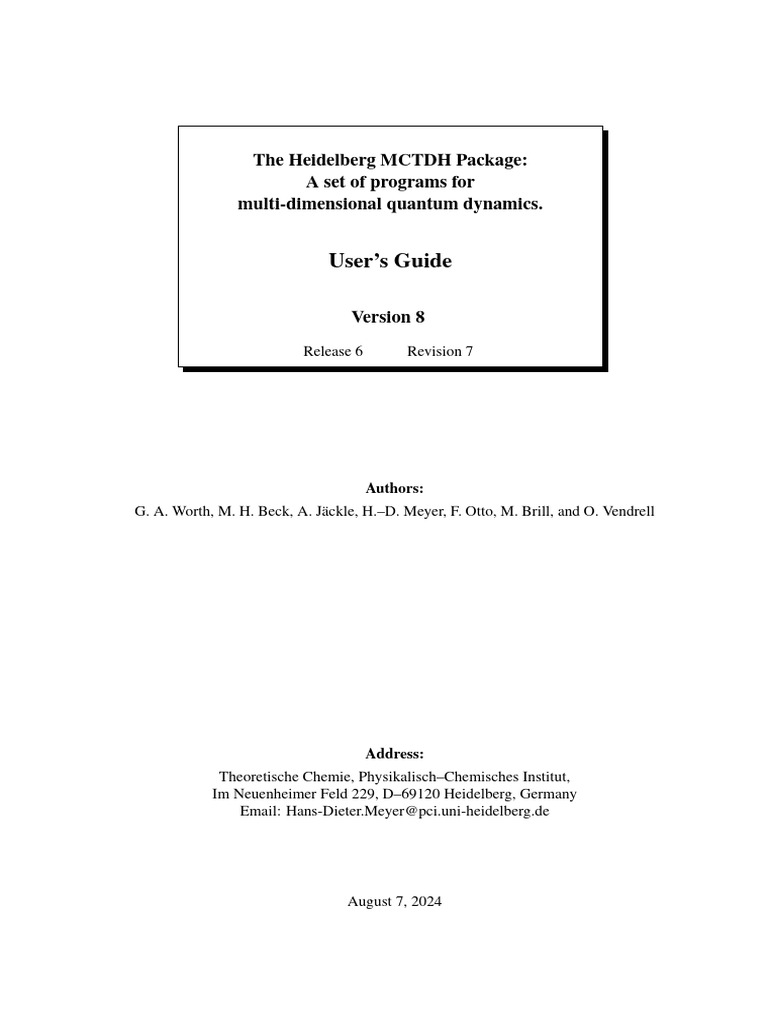 of his PhD work in Heidelberg. The Heidelberg MCTDH package was created by G. A.