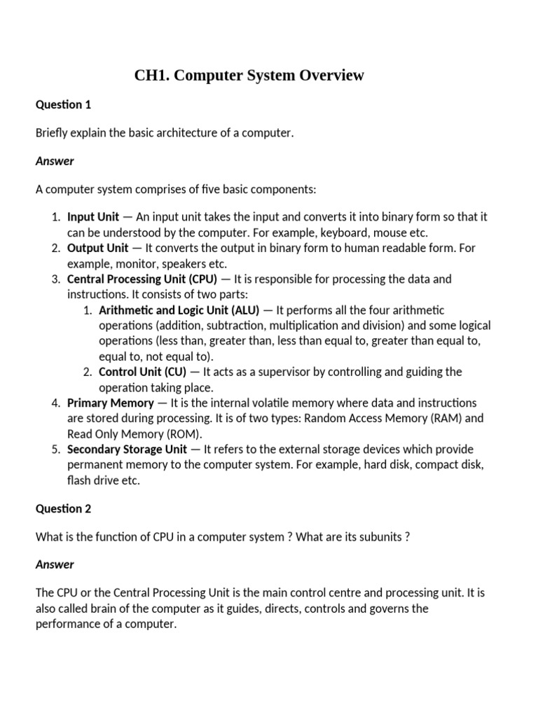 1. Arithmetic and Logic Unit (ALU) — It performs all the four arithmetic