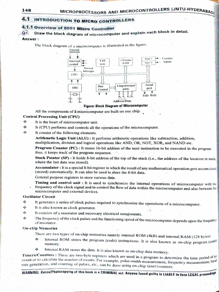 Timing and control unit : It is used to synchronize the internal operations of microcomputer with the