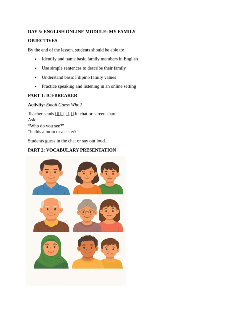 DAY 5: ENGLISH ONLINE MODULE: MY FAMILY