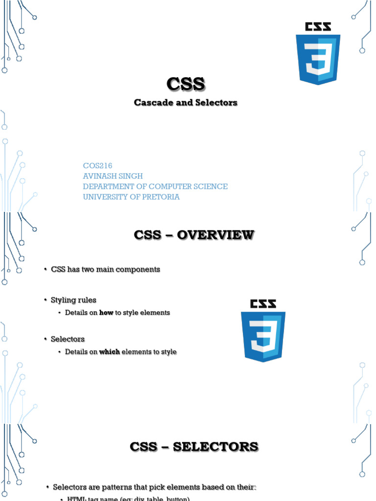 • CSS selectors are also used in JavaScript and JQuery to find elements in the DOM