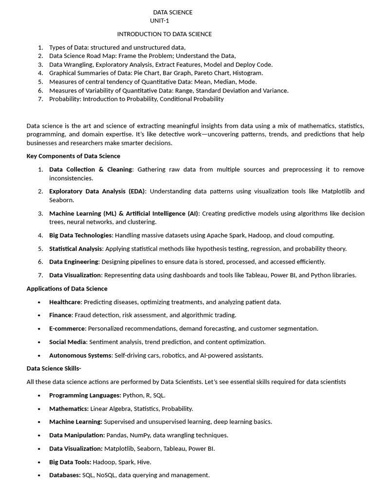 1. Types of Data: structured and unstructured data,