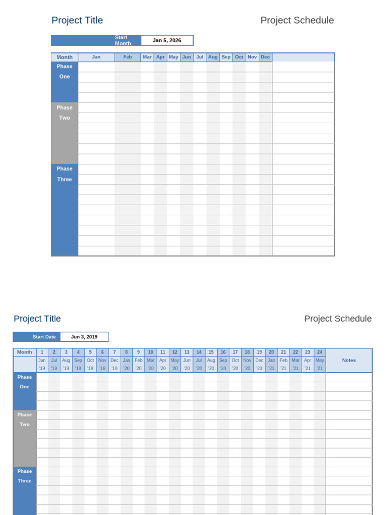 http://www.vertex42.com/ExcelTemplates/project-schedule-template.html © 2014-2019 Vertex42 LLC