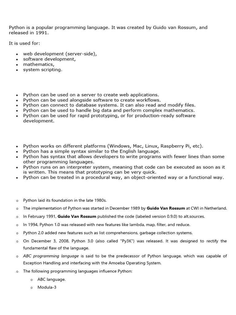 Python is a popular programming language. It was created by Guido van Rossum, and