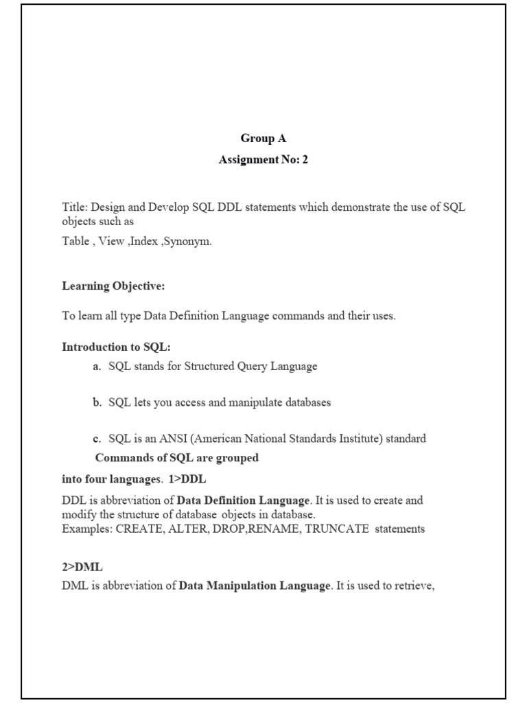 replace, and delete tables, Indexes, Views, and comment on database objects; and