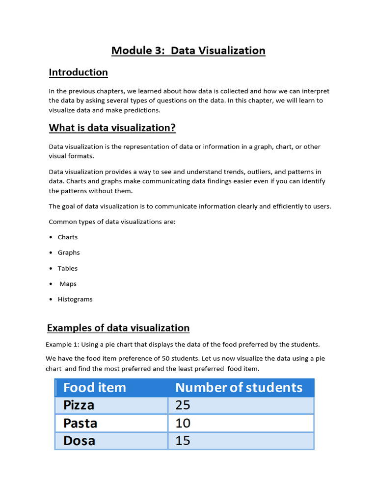 Data visualization provides a way to see and understand trends, outliers, and patterns in