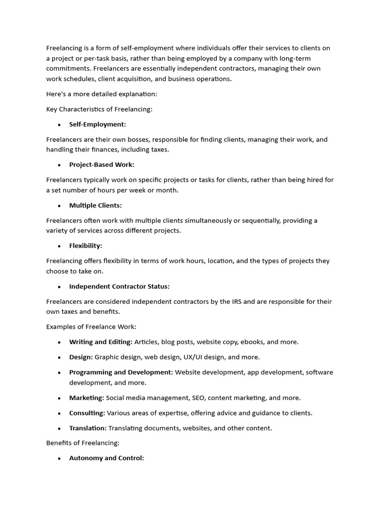 Freelancing is a form of self-employment where individuals offer their services to clients on
