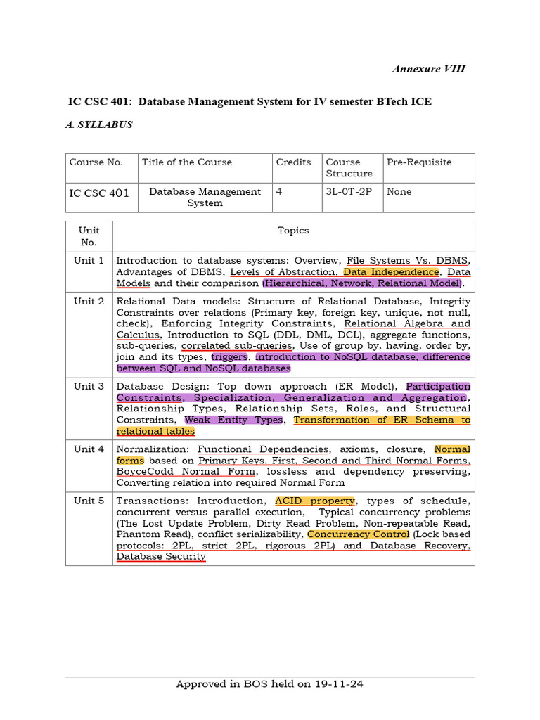 IC CSC 401: Database Management System for IV semester BTech ICE