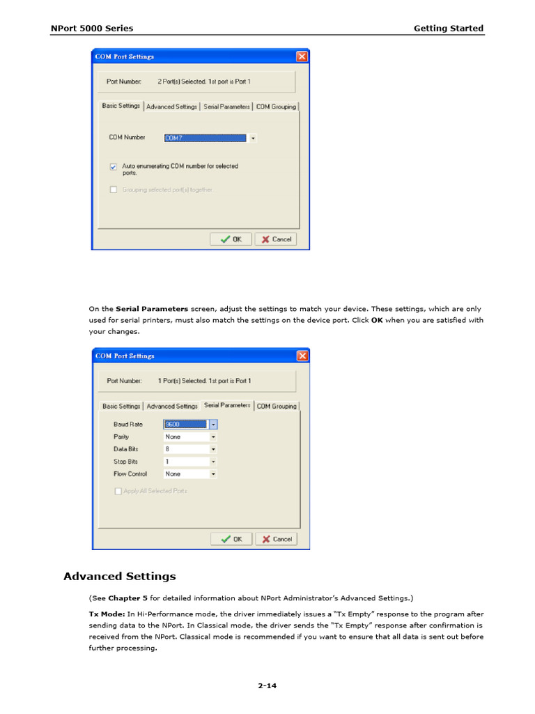 used for serial printers, must also match the settings on the device port. Click OK when you are satisfied with