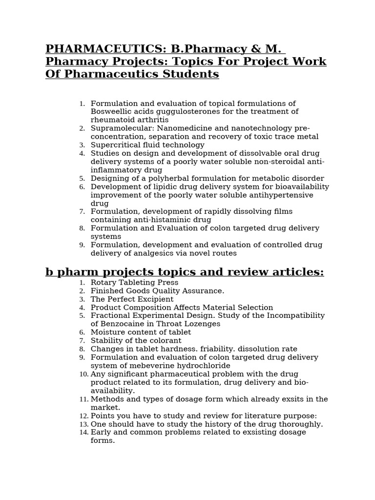 b pharm projects topics and review articles: