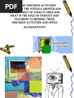 children. TV viewing has also been linked with disruptions to sleep; one hour of TV viewing per day