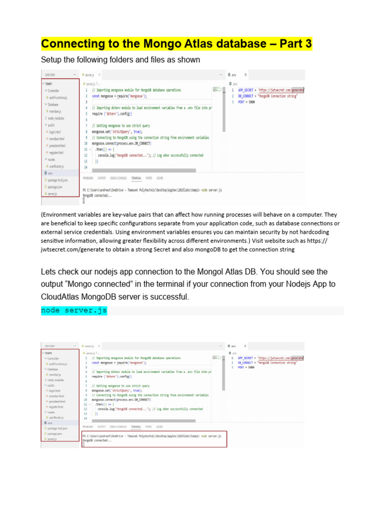 jwtsecret.com/generate to obtain a strong Secret and also mongoDB to get the connection string