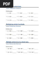 d) 9 x 10 = 90 e) 10 x 0 = 0 f) 1 x 10 = 10