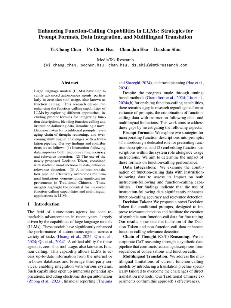 commercial-grade LLMs. In our prompt design, allel Multiple Function—categorized based on the