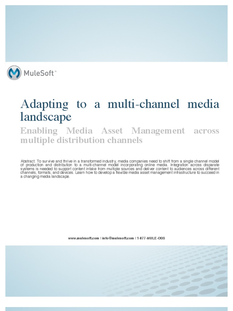 As firms feel the pressure to shift to a multi-channel model, this approach is becoming increasingly outdated. Although such custom built integrations are typically quick to implement and particularly well suited to the single channel model of production and distribution, they present several disadvantages to firms that want to increase their agility in a new media environment. Since systems are directly integrated in a point-to-point architecture, it becomes increasingly difficult to add new systems or onboard new content partners in response to changing business needs. When the vast majority of content followed a single flow and passed through a single content management system, this was a manageable problem. However, as sources and distribution channels proliferate, this approach fails to meet the challenge. In a new media environment where it is necessary to quickly and easily connect a vast number of systems more than ever beforecontent management stores, transcoding applications, workflow monitors, delivery systems, external content partner systems, and morepoint-to-point architectures built around a single definitive CMS infrastructure are obsolete. A particularly apt illustration of the shortcomings of a CMS infrastructure is a leading business magazine in the United States. In print since the early 1910s, the magazine was one of the early adopters of online media and began publishing editorial content on the Web in the 1990s. With the media industry still in the early stages of a major shift, the company did not anticipate a need for third-party content aggregation and multichannel distribution capabilities. As such, the company relied primarily on a CMS system and built custom integrations to other systems as needed. In a new multichannel environment requiring many more systems, however, this kind of architecture became overly complex and time-consuming to modify or maintain. To align its infrastructure with a multichannel model, the company chose MuleSoft as the core of their integration platform, enabling them to separate integrations from business logic. Now, the company can seamlessly connect a wide range of systems, such as a CMS system, application server, database, and Web services, and quickly make modifications to their infrastructure to address changing business needs. As this example shows, media companies need an integration layer to increase agility and stay competitive in the fast-paced media industry. Integration enables media companies to quickly deliver new content and rapidly on-board new systems, laying a solid foundation for meeting future business needs with ease. Moreover, an integration layer dramatically reduces the maintenance burdens associated with bespoke infrastructures, resulting in a lower total cost of ownership and freeing up developer time to focus on innovating new content offerings and user experiences. Mail Online, the worlds most visited online newspaper provides another example of how integration can enhance overall agility in a media environment. As the online presence of The Daily Mail, one of the United Kingdoms leading daily newspapers, the online news site receives nearly 100 million unique readers each month and more than 6 million every day who visit the site for breaking news, sports, show business, science, and health stories from across the globe. To manage and deliver news articles to its massive audience, Mail Online built a customized media asset infrastructure consisting of point-to-point integrations. Unfortunately, this legacy infrastructure failed to support their explosive growth and was ill suited for handling the increasing complexity of their asset management processes. Using Mule as their core integration platform, which connects multiple back-end systems with their front-end site, they are able to quickly publish new articles, efficiently manage edits and modifications, and better respond to the evolving interests of their readers.