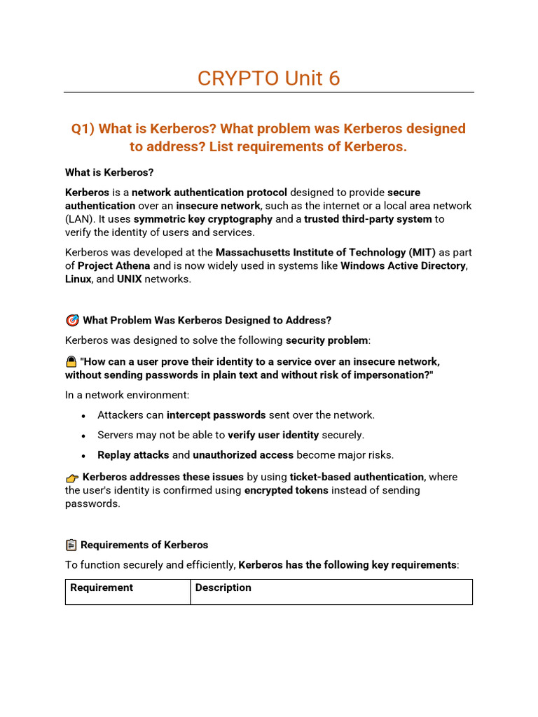 6. Protection Against Kerberos uses time-stamped tickets and authenticators
