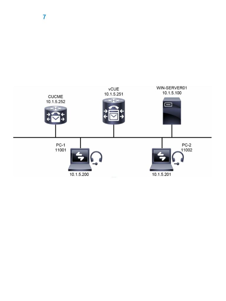 topology diagram), which will be integrated with Cisco Unity Express Virtual (vCUE). WIN-SERVER01 acts as a