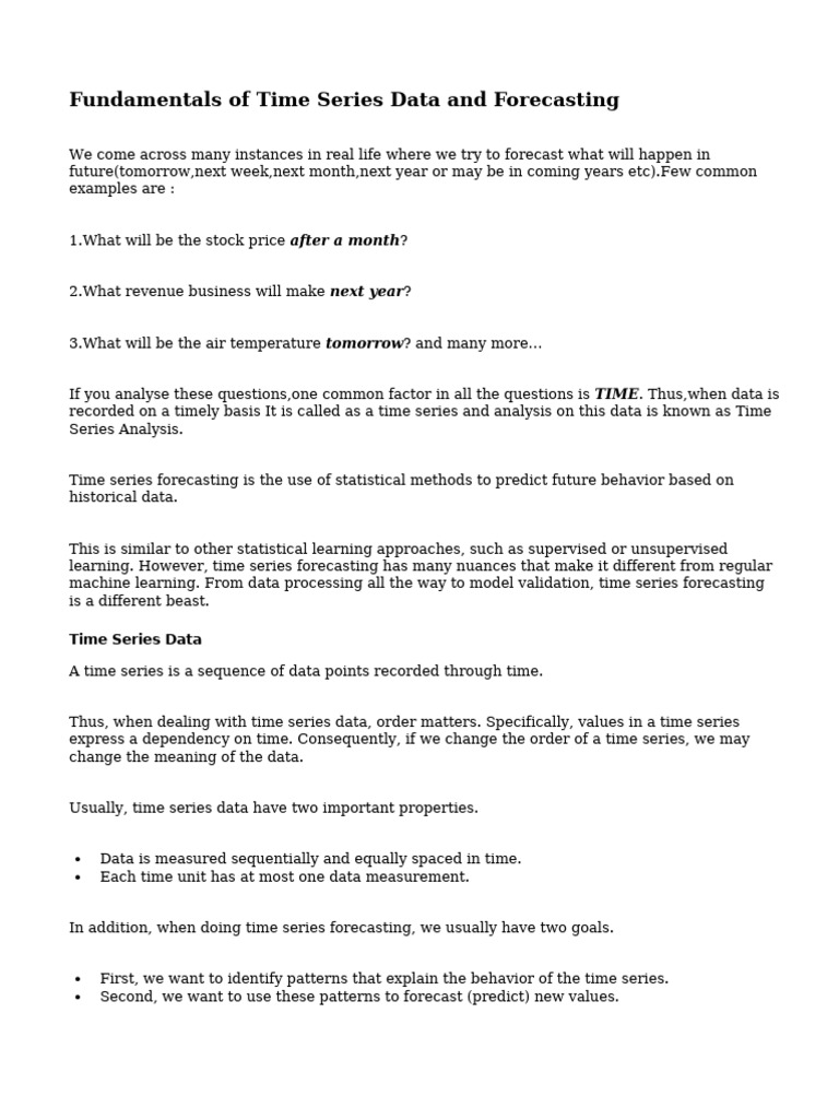 technique is that the data is stationary. Time Series data will have some pattern or behavior over