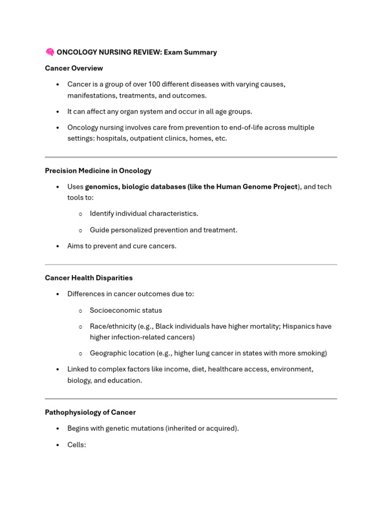 ONCOLOGY NURSING REVIEW: Exam Summary