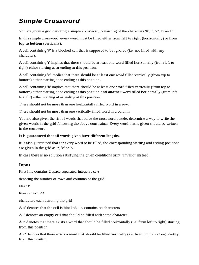 It is also guaranteed that for every word to be filled, the corresponding starting and ending positions