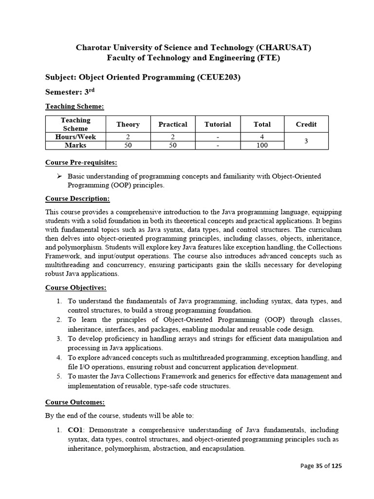 Subject: Object Oriented Programming (CEUE203)