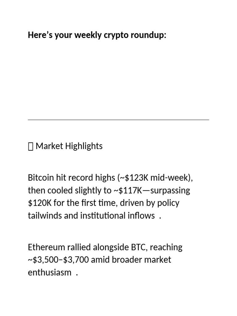 Bitcoin hit record highs (~$123K mid-week),