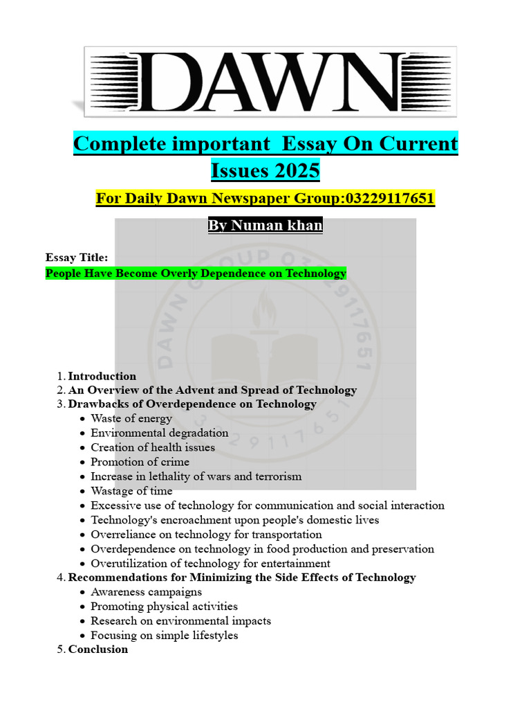 For Daily Dawn Short Essay, Dawn Editorial with Short notes,