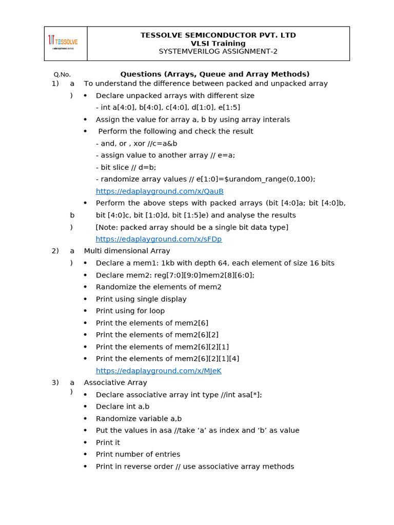 1) a To understand the difference between packed and unpacked array