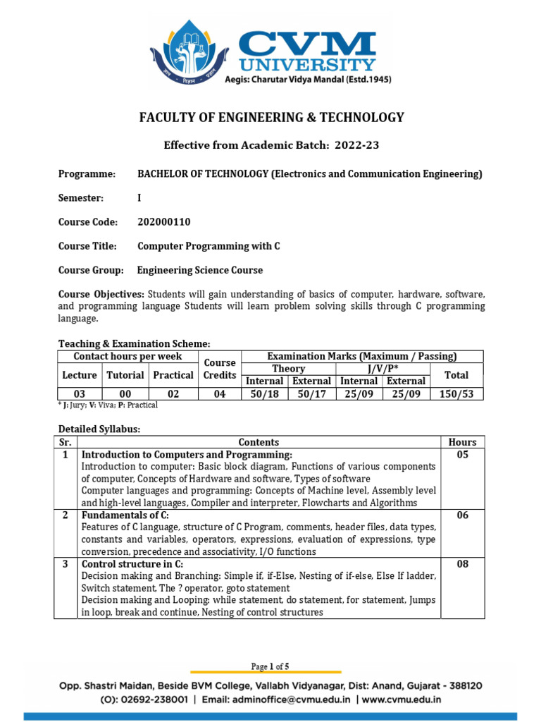 Programme: BACHELOR OF TECHNOLOGY (Electronics and Communication Engineering)