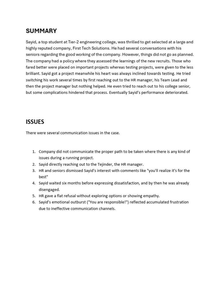 2. Sayid directly reaching out to the Tejinder, the HR manager.